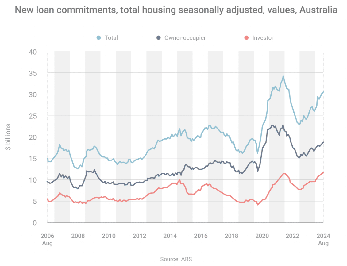 Lenders are competing strongly for borrowers, especially those with strong credit profiles. As a result, borrowing activity jumped 18.2% between January 2024 and August 2024, according to the most recent data from the Australian Bureau of Statistics.