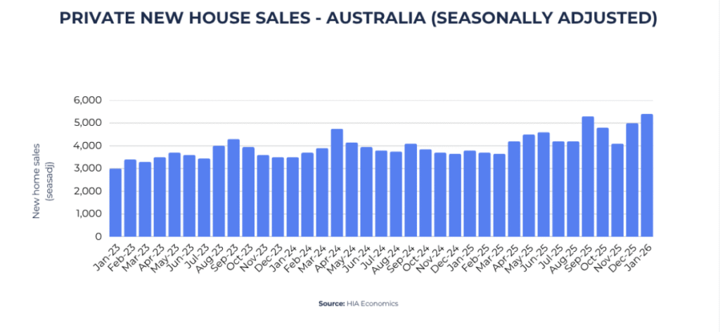New home sales in the January 2026 quarter were 26.2% higher than a year earlier, according to the Housing Industry Association.